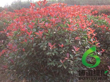 生長速度快,且萌芽性強,耐修剪,可根據園林需要栽培成不同的樹形,在園林綠化上用途廣泛。一至二年生的紅葉石楠可修剪成矮小灌木,在園林綠地中作為地被植物片植,或與其他彩葉植物組合成各種圖案;也可培育成獨干不明顯、叢生形的小喬木,群植成大型綠籬或幕墻,在居住區、廠區綠地、街道或公路綠化隔離帶作用,當樹籬或幕墻一片火紅之際,非常艷麗,極具生機盎然之美;紅葉石楠還可培育成獨干、球形樹冠的喬木,在綠地中孤植,或作行道樹,或盆栽后在門廊及室內布置。